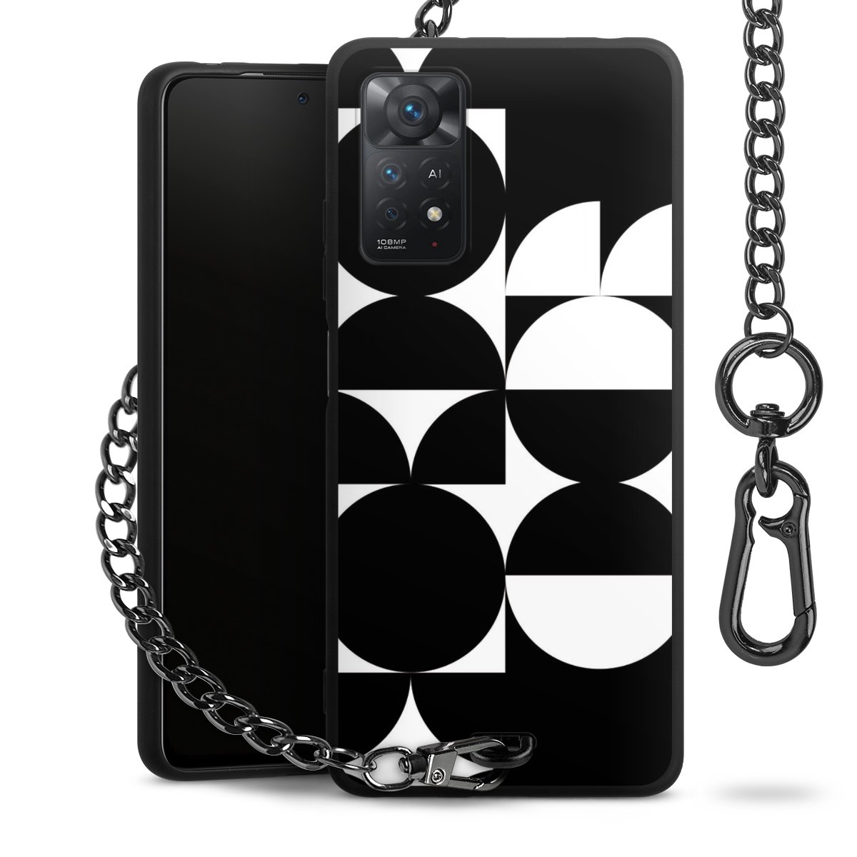 - Mattschwarze Handyhülle mit Metallkette