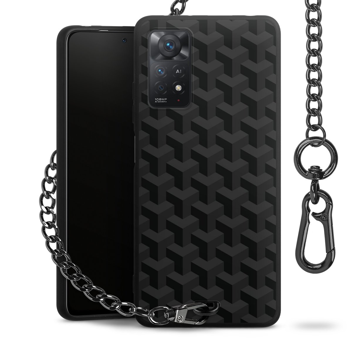- Mattschwarze Handyhülle mit Metallkette