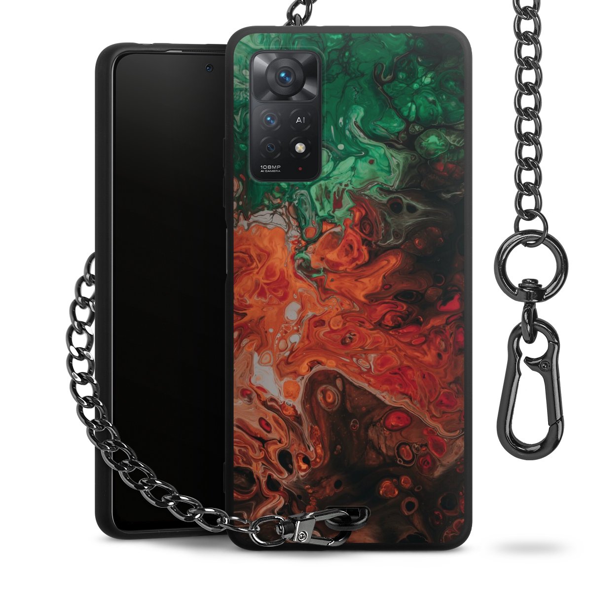 - Mattschwarze Handyhülle mit Metallkette