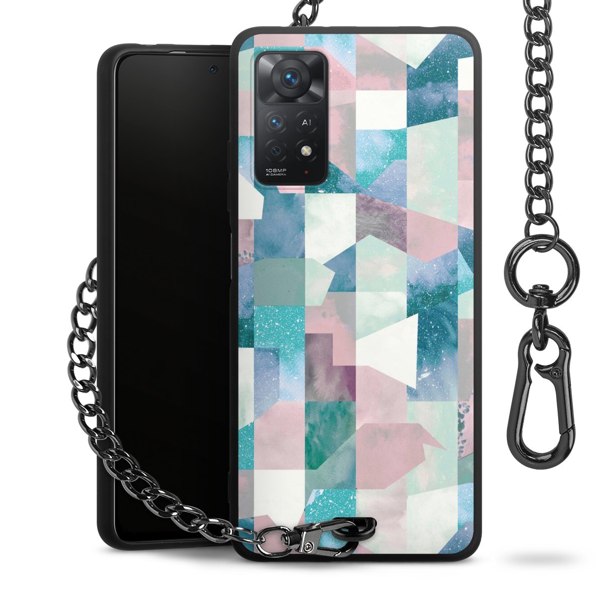 • Mattschwarze Handyhülle mit Metallkette