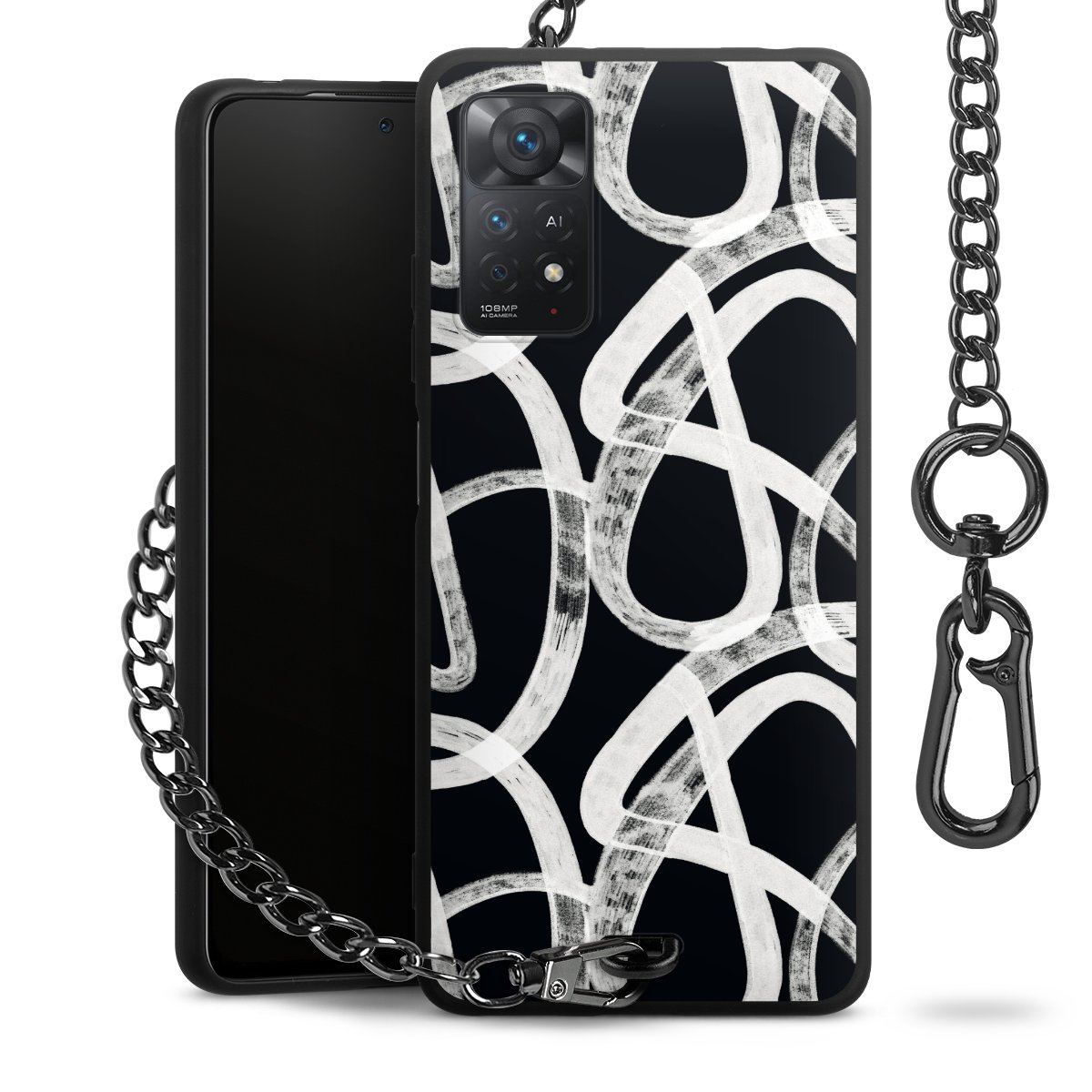 • Mattschwarze Handyhülle mit Metallkette