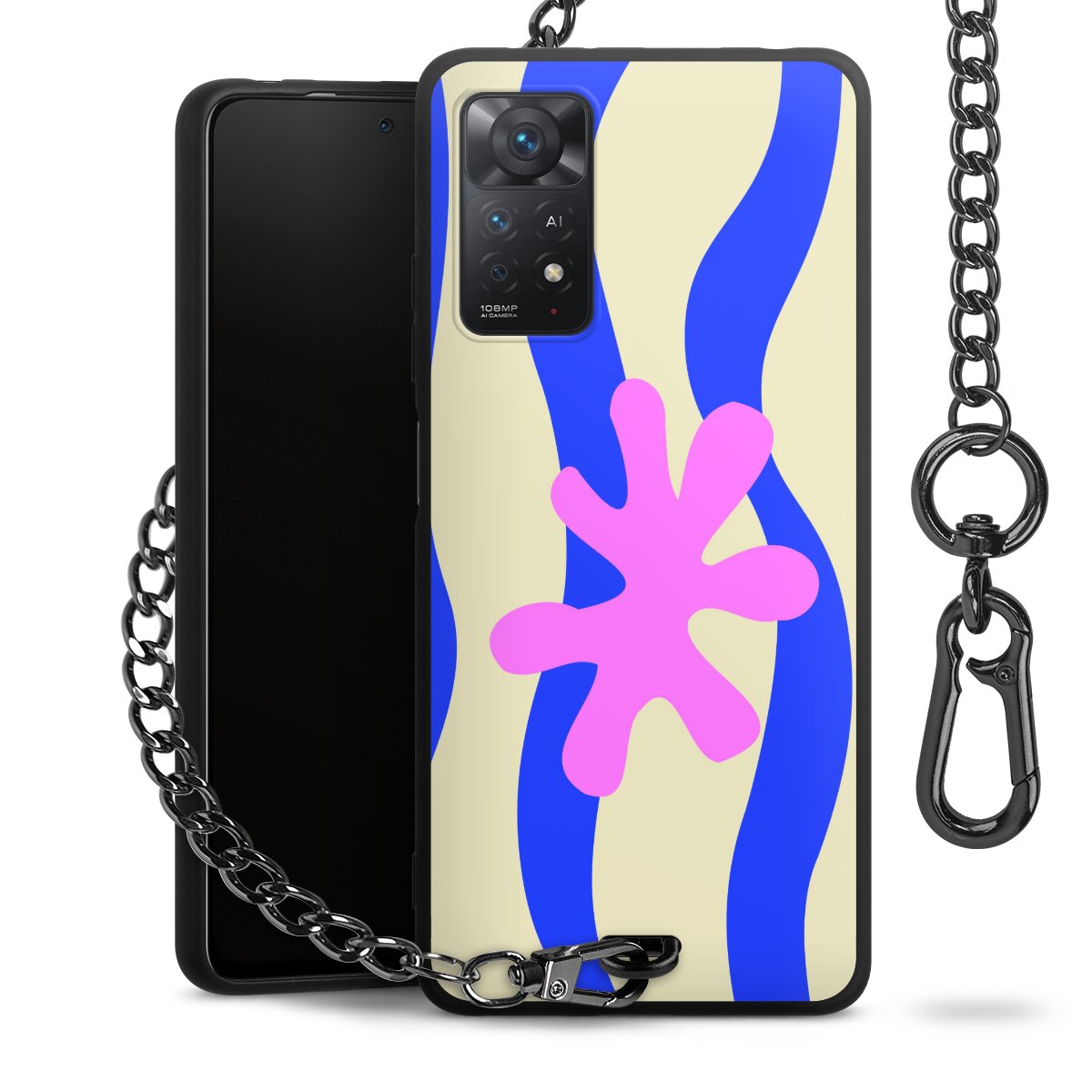 • Mattschwarze Handyhülle mit Metallkette