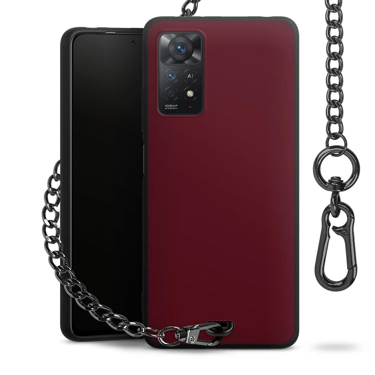 - Mattschwarze Handyhülle mit Metallkette