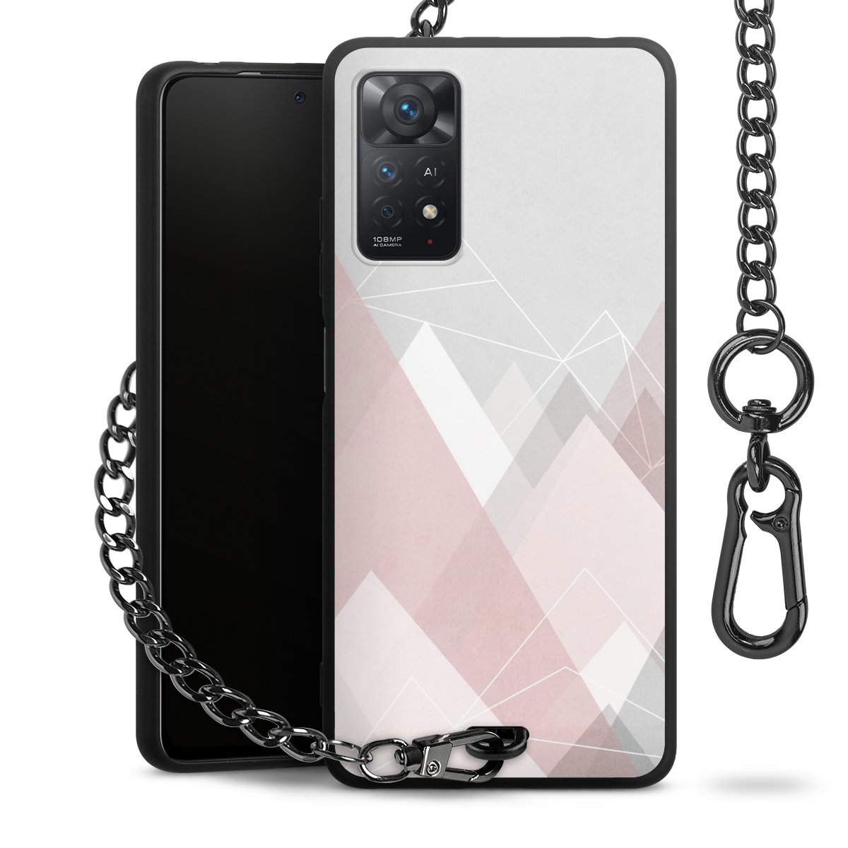 • Mattschwarze Handyhülle mit Metallkette