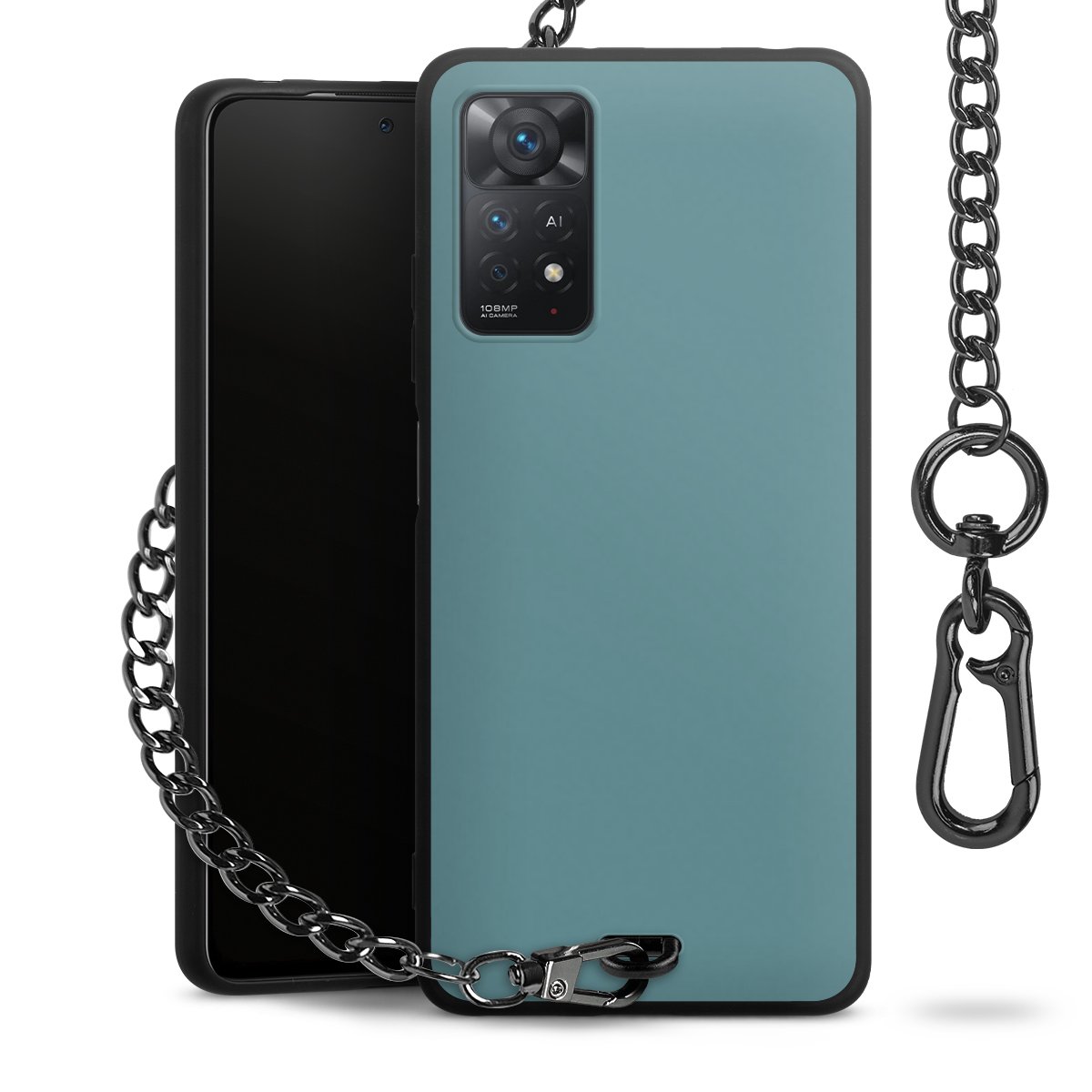 • Mattschwarze Handyhülle mit Metallkette
