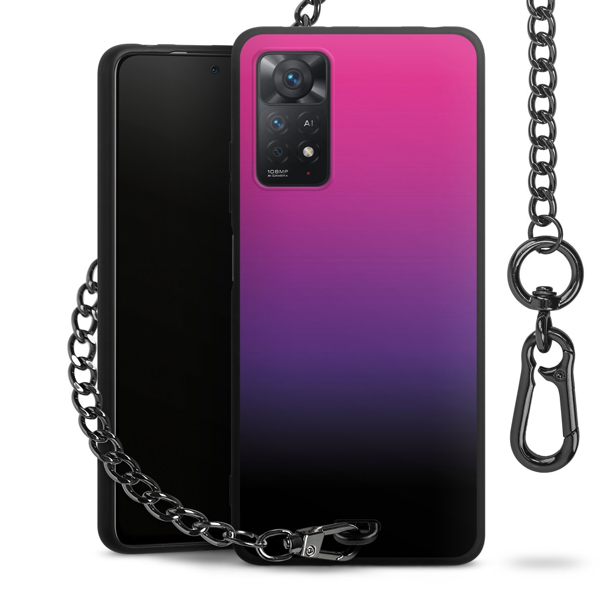 - Mattschwarze Handyhülle mit Metallkette
