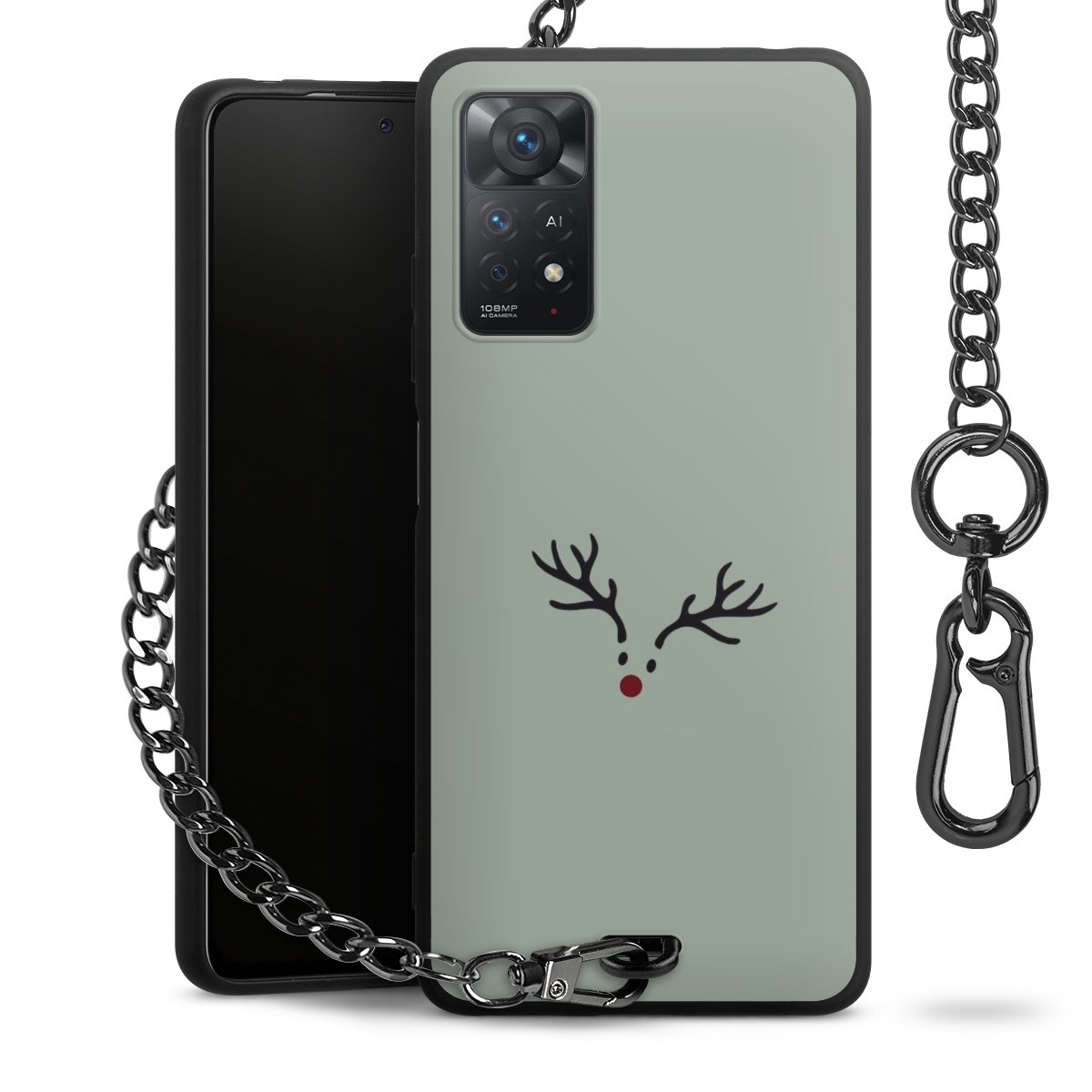 - Mattschwarze Handyhülle mit Metallkette