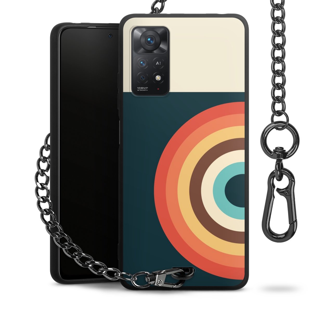 - Mattschwarze Handyhülle mit Metallkette