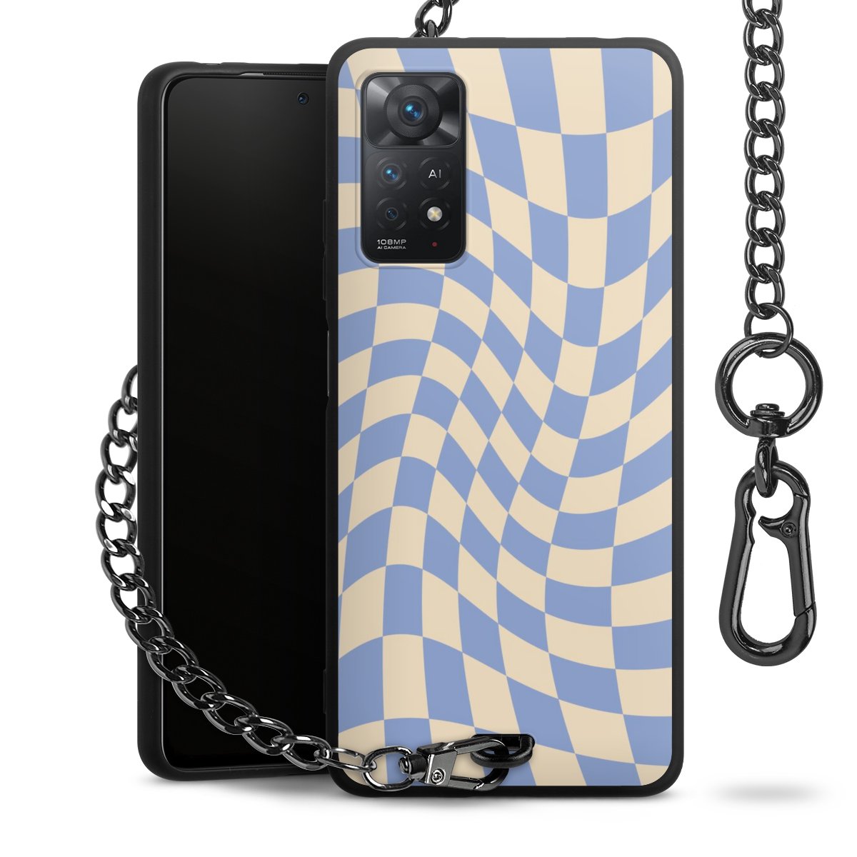 - Mattschwarze Handyhülle mit Metallkette