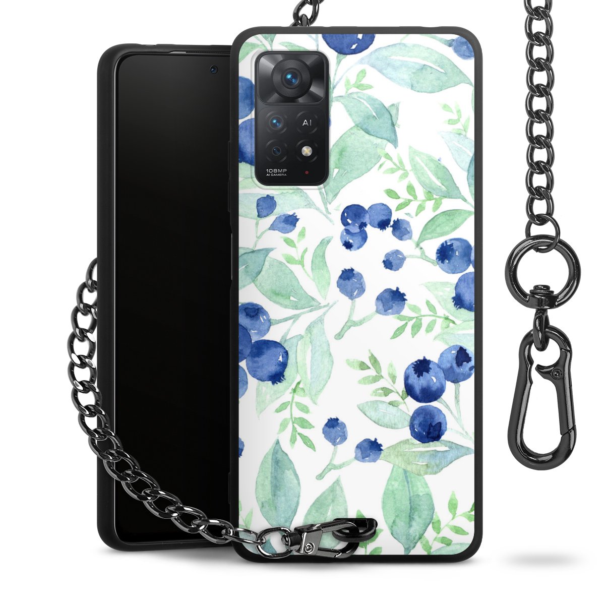 • Mattschwarze Handyhülle mit Metallkette