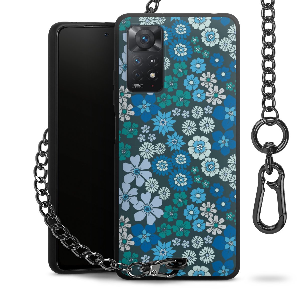 • Mattschwarze Handyhülle mit Metallkette
