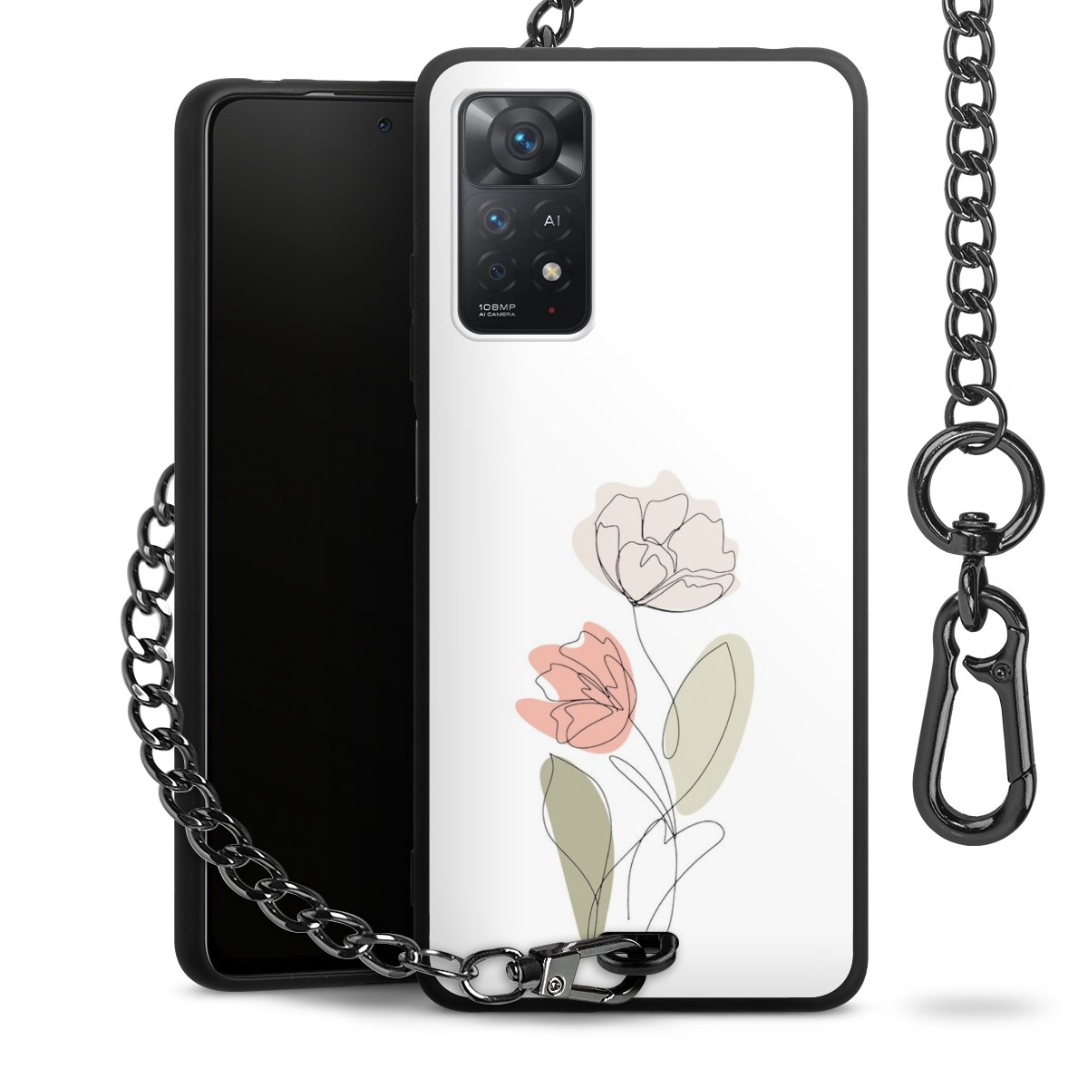 • Mattschwarze Handyhülle mit Metallkette