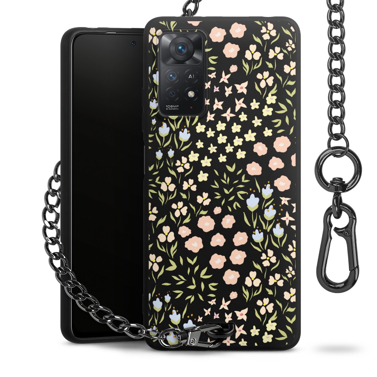 • Mattschwarze Handyhülle mit Metallkette