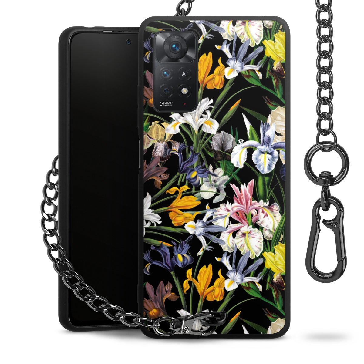 • Mattschwarze Handyhülle mit Metallkette