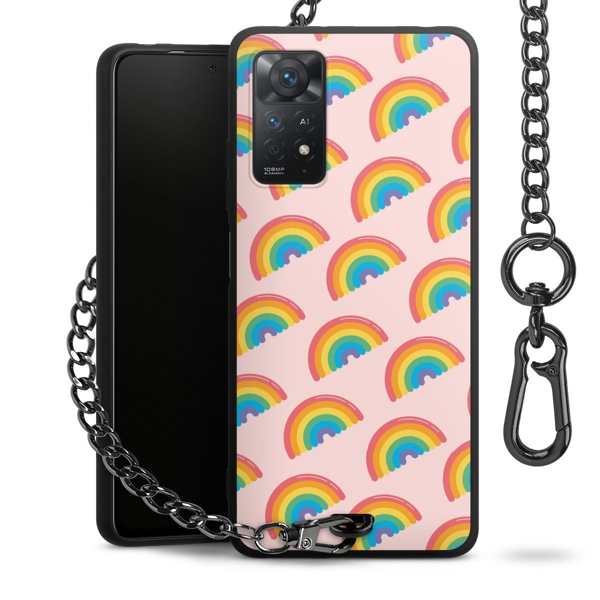 • Mattschwarze Handyhülle mit Metallkette