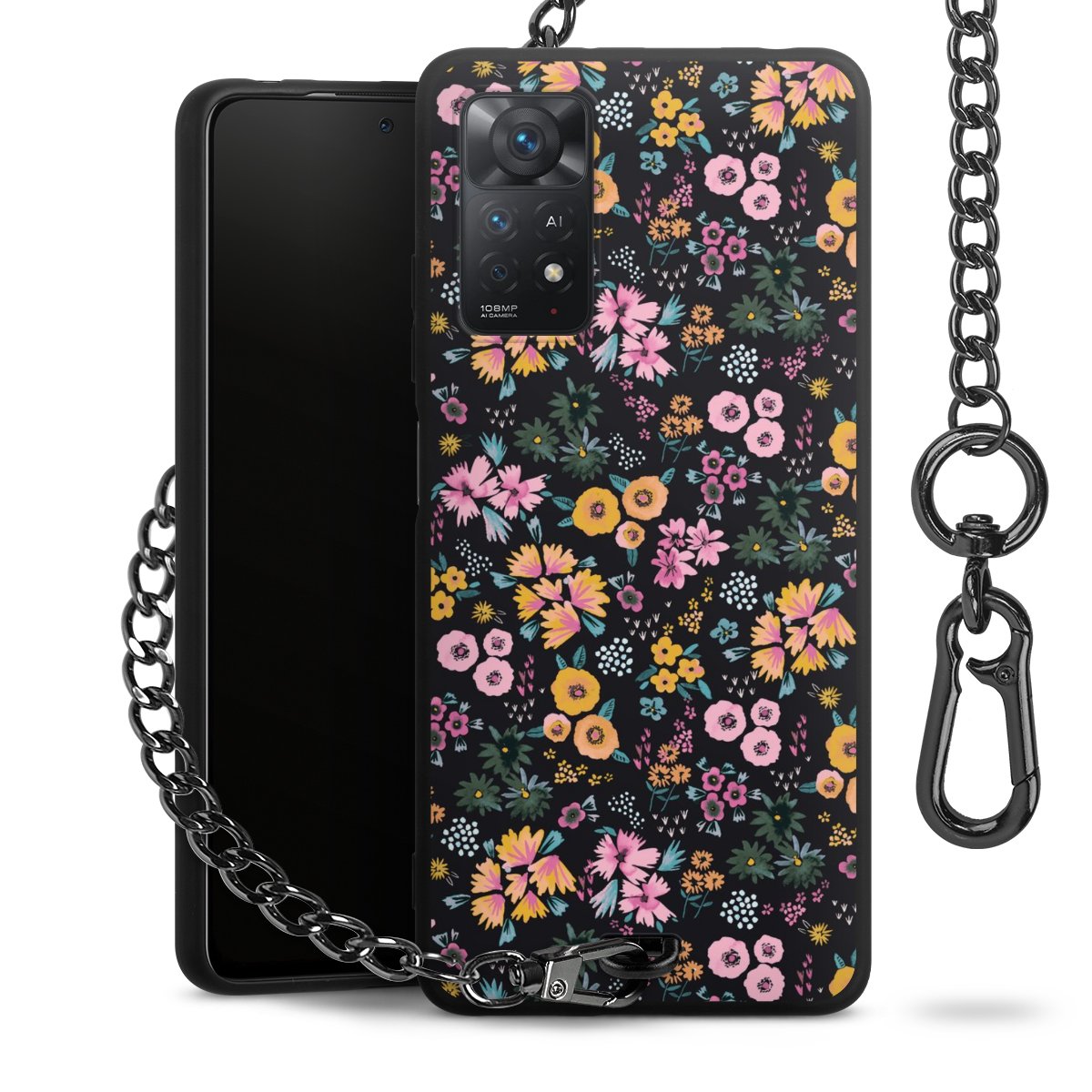 • Mattschwarze Handyhülle mit Metallkette