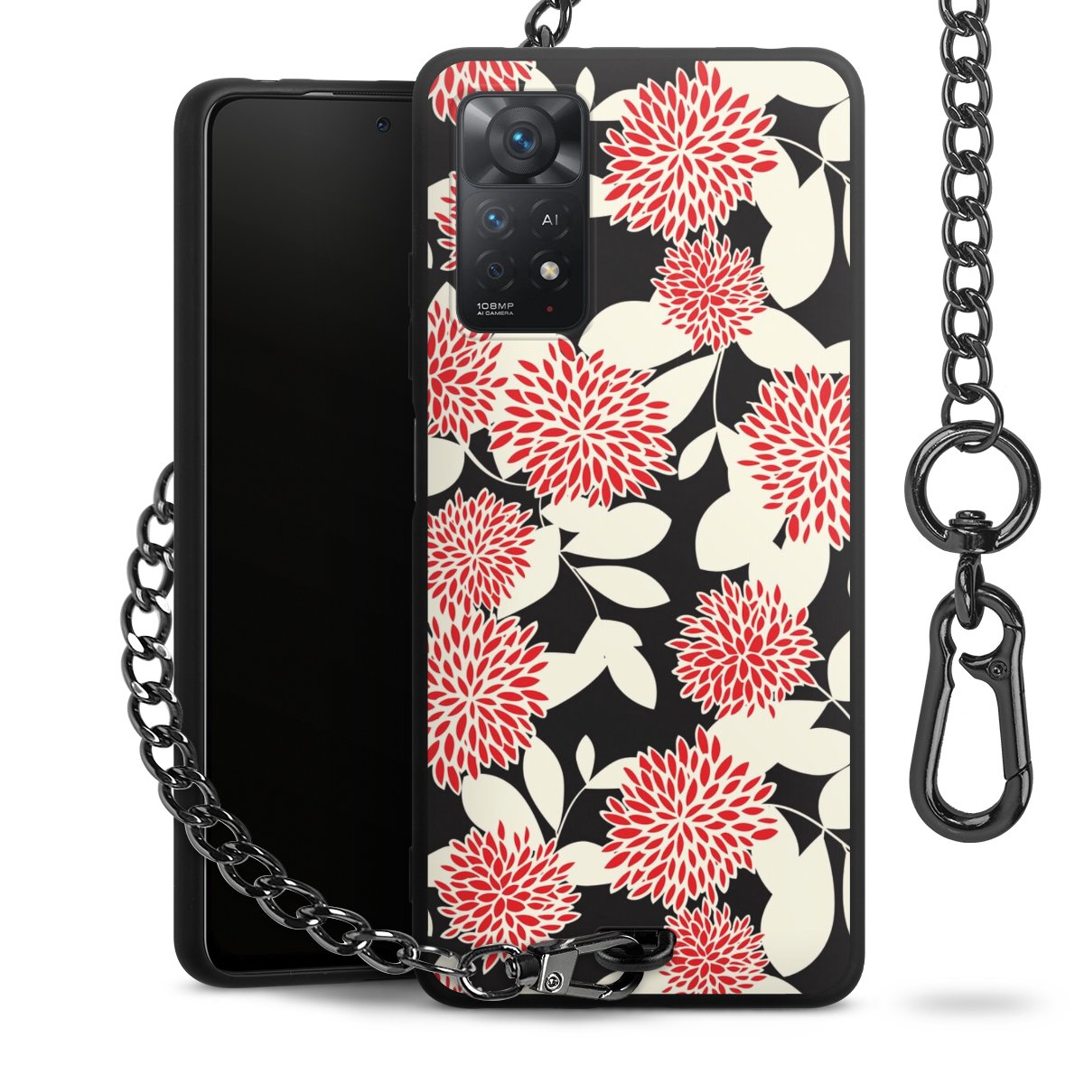- Mattschwarze Handyhülle mit Metallkette