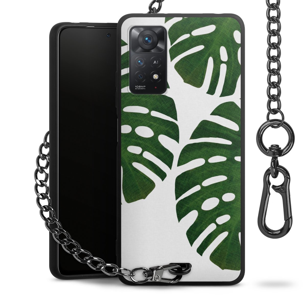 • Mattschwarze Handyhülle mit Metallkette