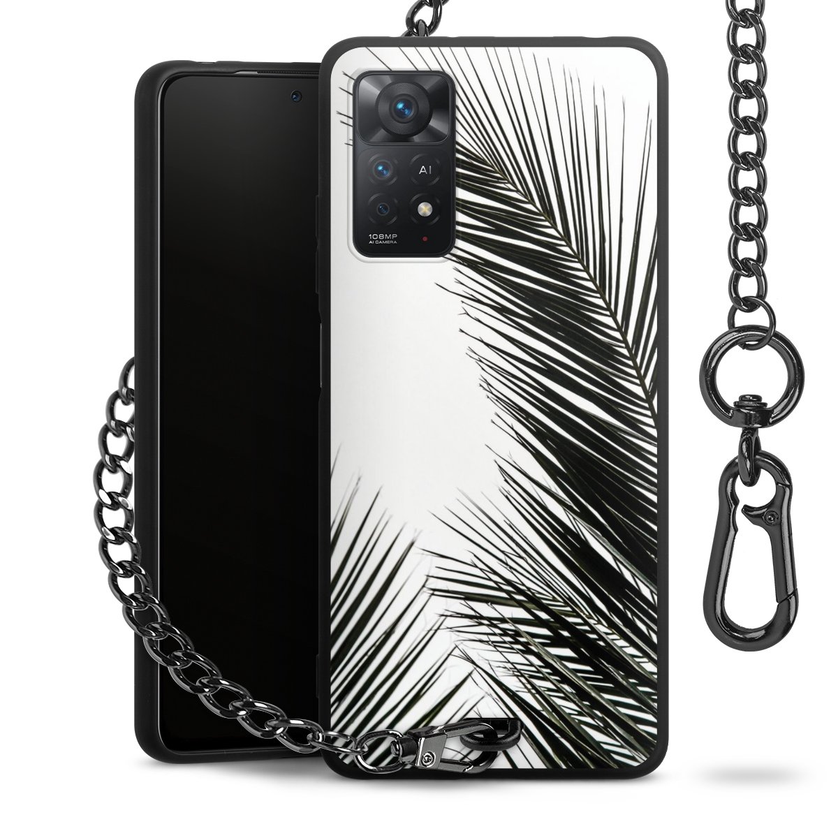 • Mattschwarze Handyhülle mit Metallkette