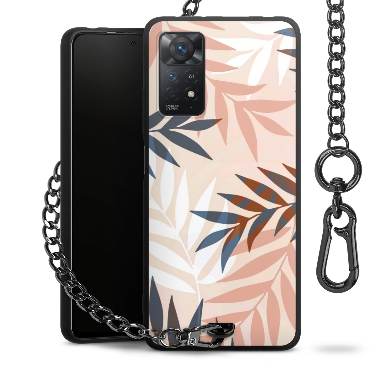 • Mattschwarze Handyhülle mit Metallkette