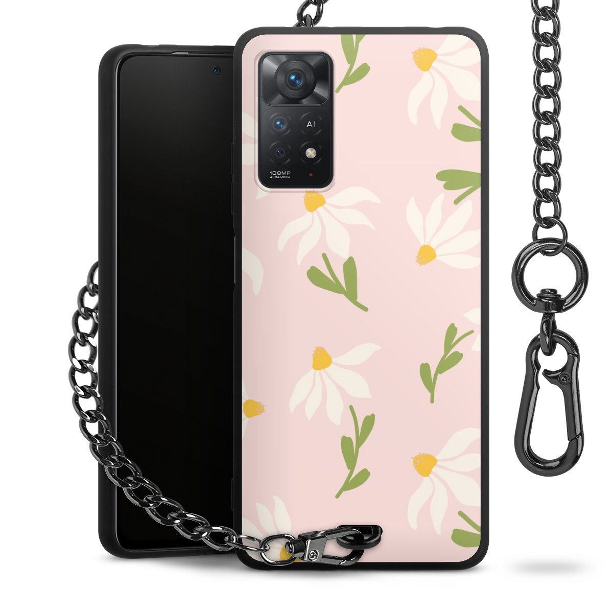 • Mattschwarze Handyhülle mit Metallkette