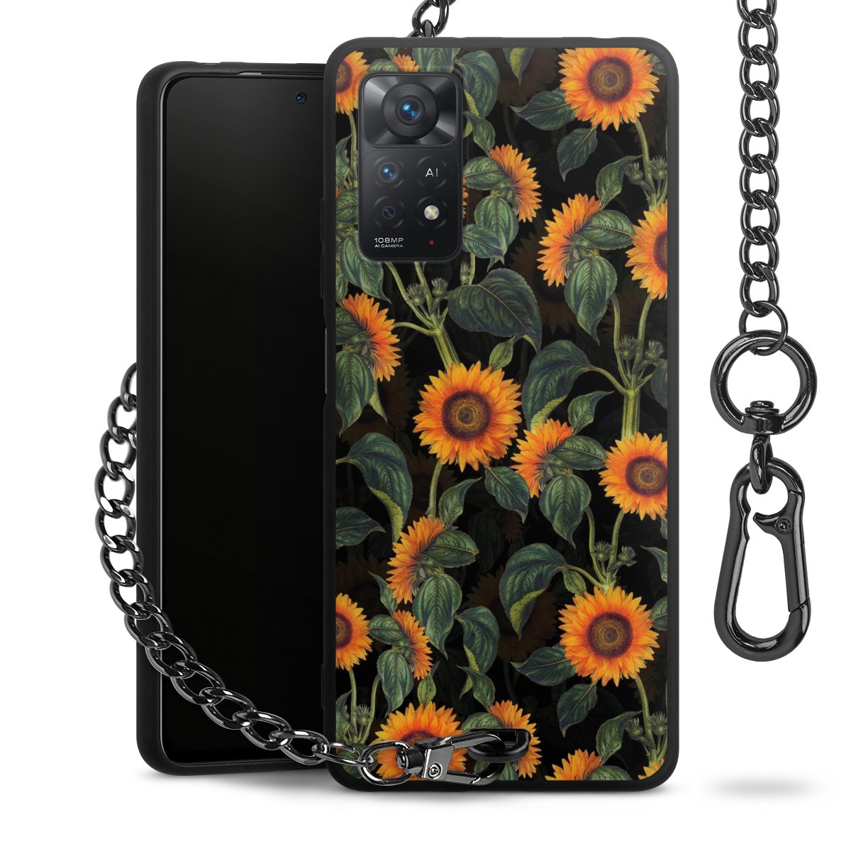 • Mattschwarze Handyhülle mit Metallkette