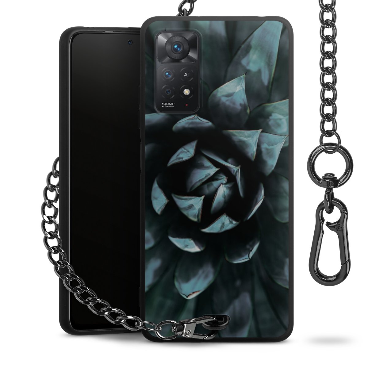 - Mattschwarze Handyhülle mit Metallkette