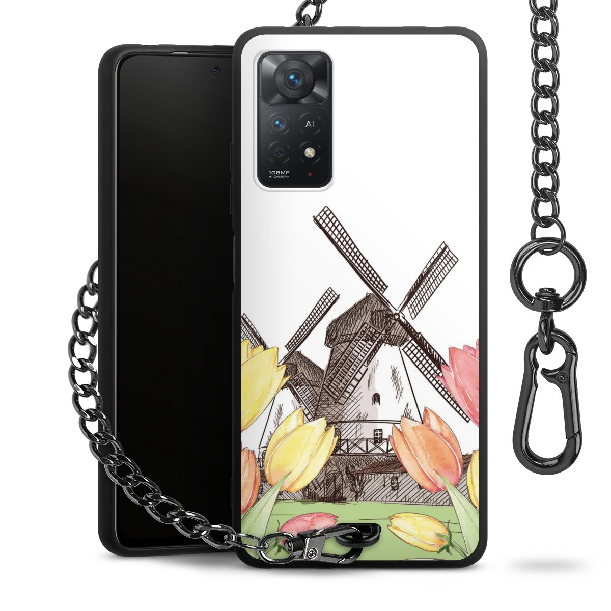 - Mattschwarze Handyhülle mit Metallkette