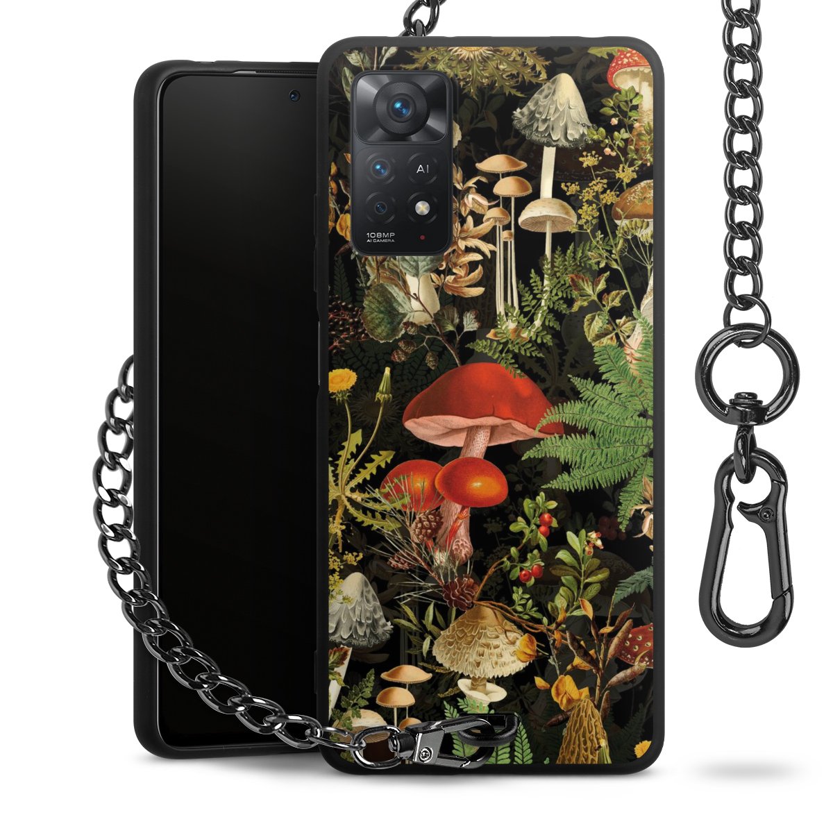 • Mattschwarze Handyhülle mit Metallkette