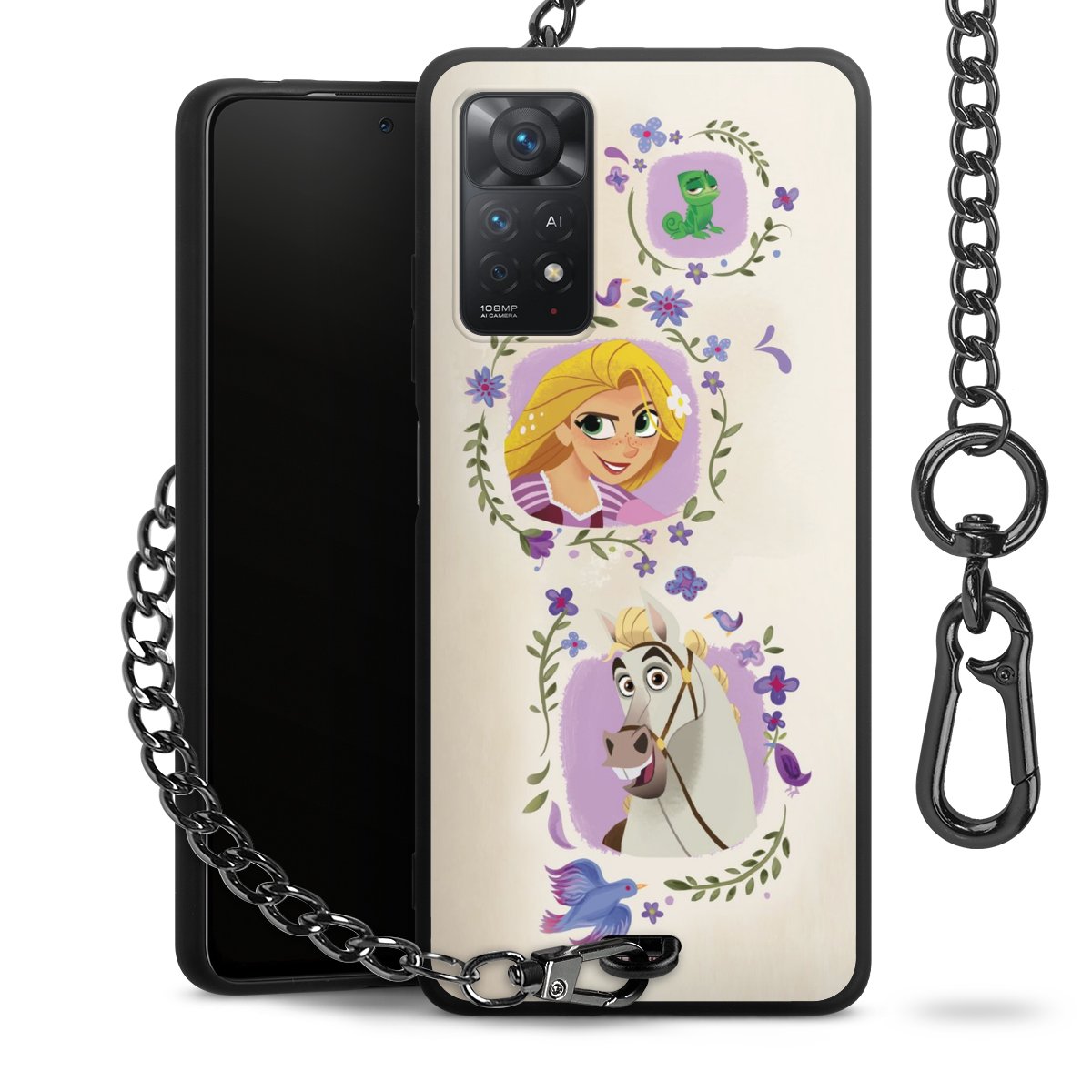 • Mattschwarze Handyhülle mit Metallkette