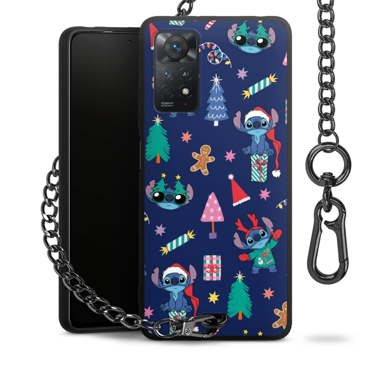 • Mattschwarze Handyhülle mit Metallkette