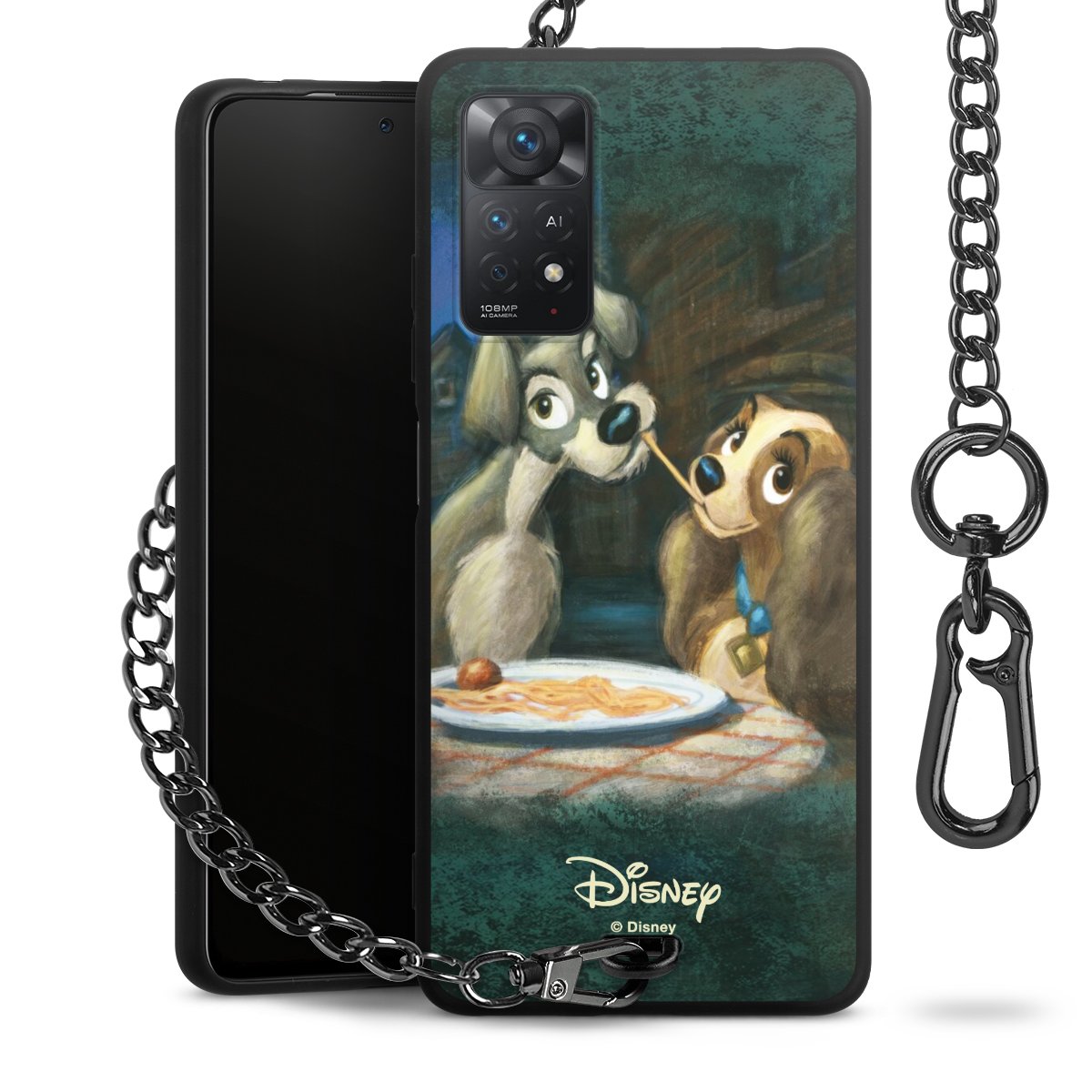 • Mattschwarze Handyhülle mit Metallkette