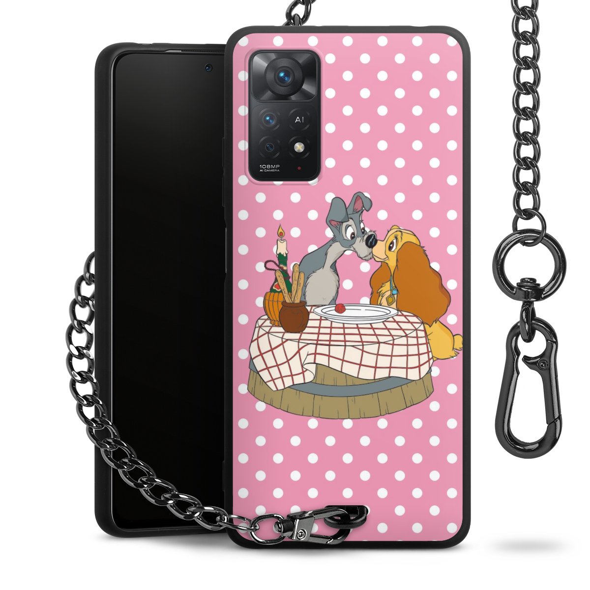 • Mattschwarze Handyhülle mit Metallkette