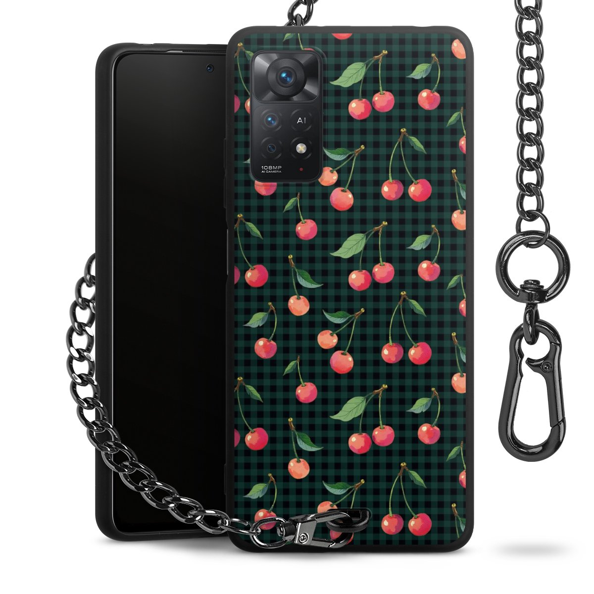 • Mattschwarze Handyhülle mit Metallkette