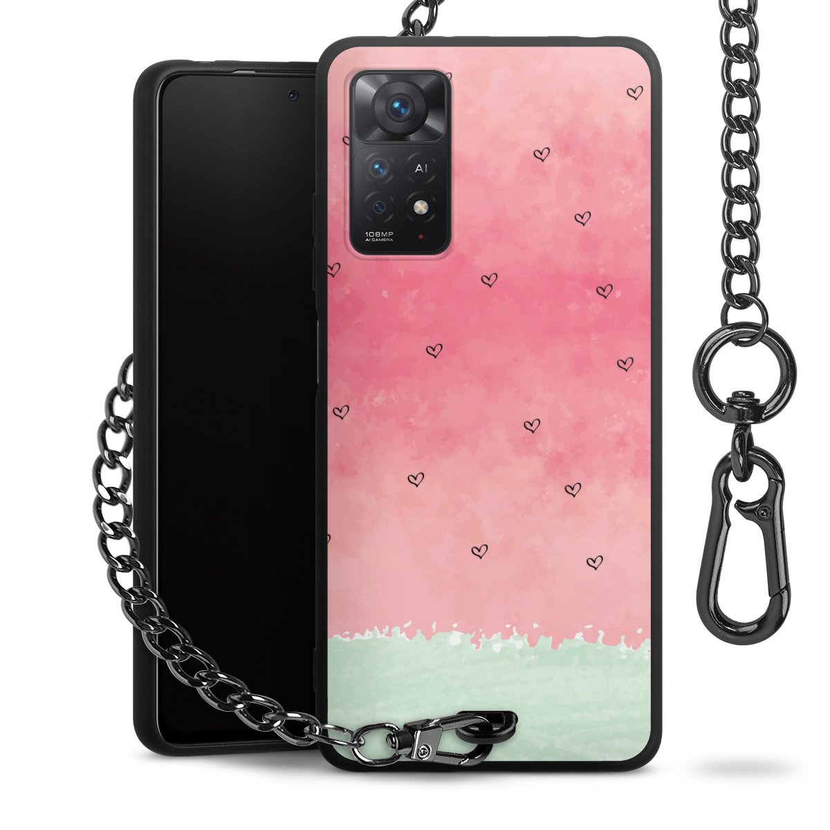- Mattschwarze Handyhülle mit Metallkette