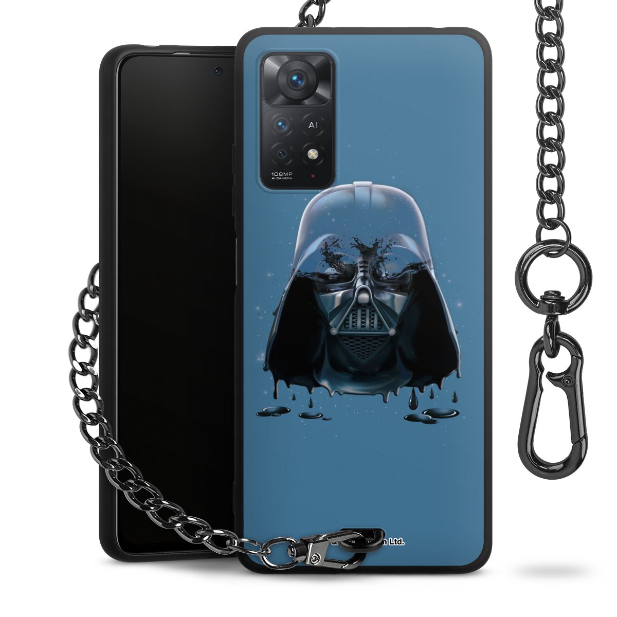 Die mattschwarze Silikon-Handyhülle besteht aus robustem TPU (thermoplastisches Polyurethan). Sie ist flexibel und schützt Dein Smartphone vor Stößen und Kratzern. Die Kette sowie der Karabinerhaken sind aus Metall in Gunmetal-Optik gefertigt. Für dieses Produkt kommen ausschließlich TÜV-geprüfte Materialien zum Einsatz.