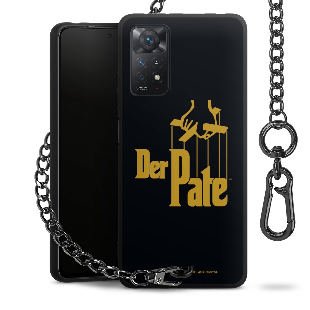Die mattschwarze Silikon-Handyhülle besteht aus robustem TPU (thermoplastisches Polyurethan). Sie ist flexibel und schützt Dein Smartphone vor Stößen und Kratzern. Die Kette sowie der Karabinerhaken sind aus Metall in Gunmetal-Optik gefertigt. Für dieses Produkt kommen ausschließlich TÜV-geprüfte Materialien zum Einsatz.