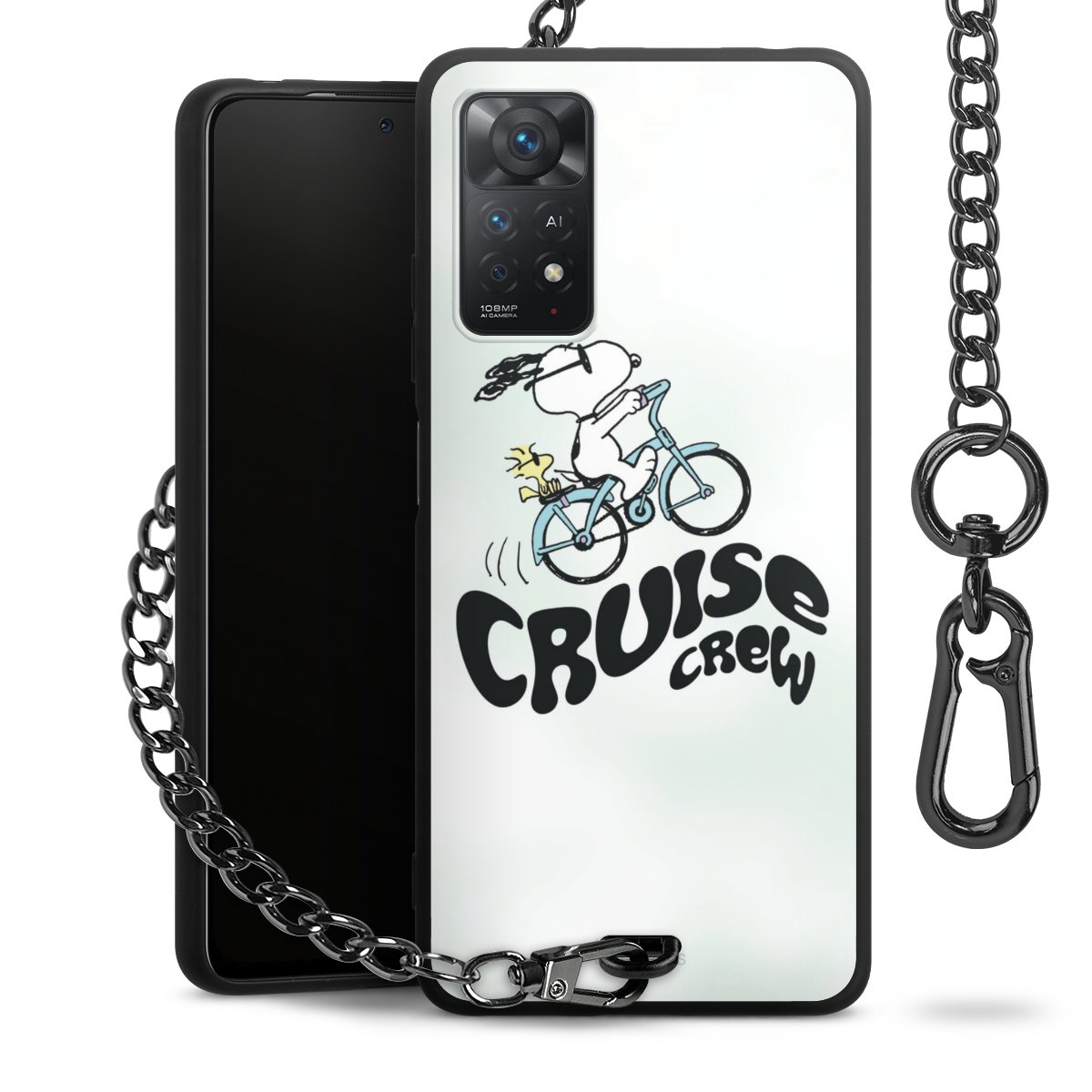 Die mattschwarze Silikon-Handyhülle besteht aus robustem TPU (thermoplastisches Polyurethan). Sie ist flexibel und schützt Dein Smartphone vor Stößen und Kratzern. Die Kette sowie der Karabinerhaken sind aus Metall in Gunmetal-Optik gefertigt. Für dieses Produkt kommen ausschließlich TÜV-geprüfte Materialien zum Einsatz.