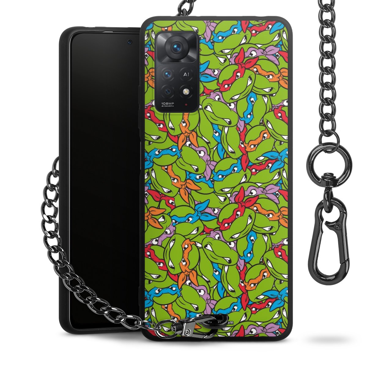 Die mattschwarze Silikon-Handyhülle besteht aus robustem TPU (thermoplastisches Polyurethan). Sie ist flexibel und schützt Dein Smartphone vor Stößen und Kratzern. Die Kette sowie der Karabinerhaken sind aus Metall in Gunmetal-Optik gefertigt. Für dieses Produkt kommen ausschließlich TÜV-geprüfte Materialien zum Einsatz.