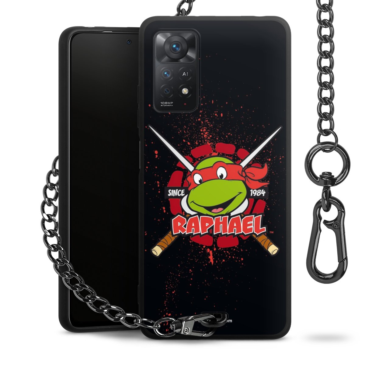 Die mattschwarze Silikon-Handyhülle besteht aus robustem TPU (thermoplastisches Polyurethan). Sie ist flexibel und schützt Dein Smartphone vor Stößen und Kratzern. Die Kette sowie der Karabinerhaken sind aus Metall in Gunmetal-Optik gefertigt. Für dieses Produkt kommen ausschließlich TÜV-geprüfte Materialien zum Einsatz.