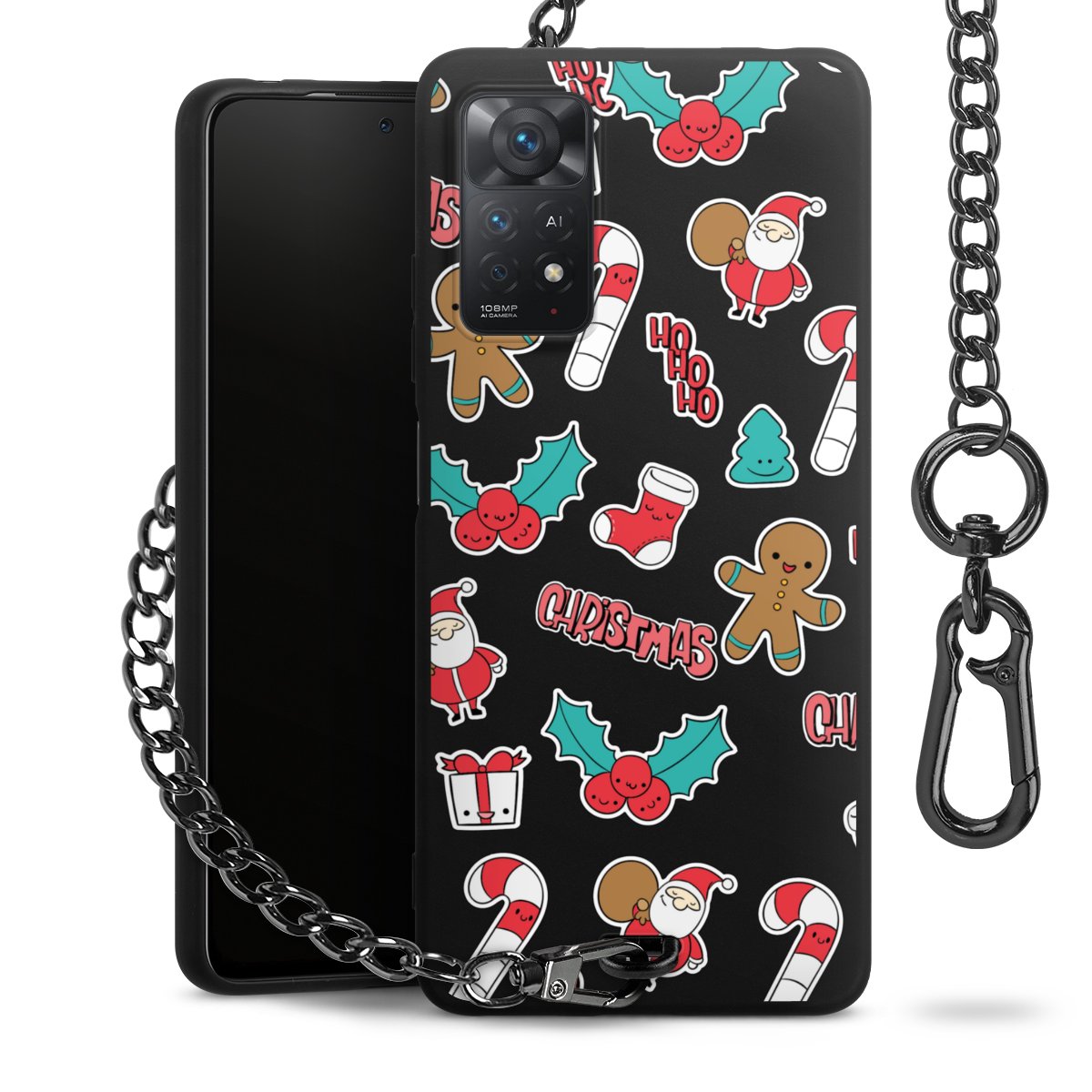- Mattschwarze Handyhülle mit Metallkette