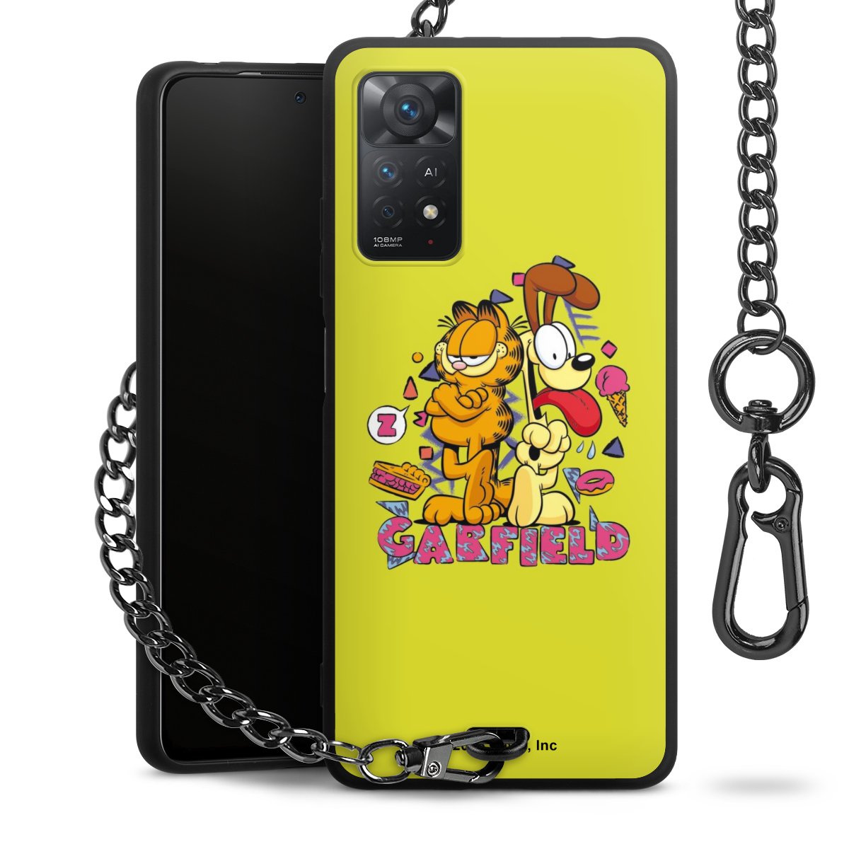 - Mattschwarze Handyhülle mit Metallkette
