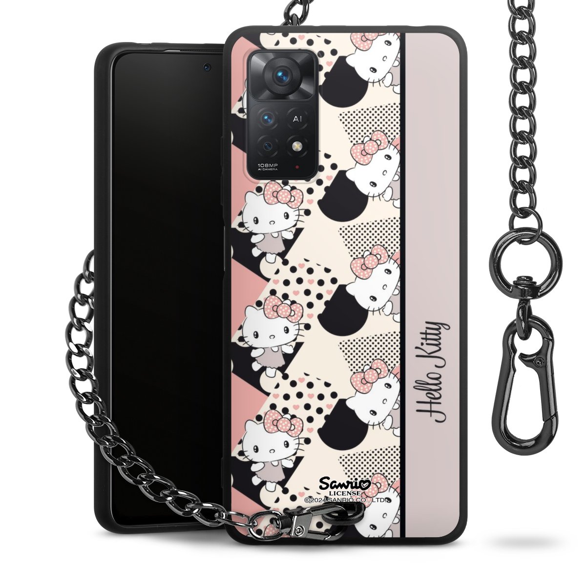 - Mattschwarze Handyhülle mit Metallkette