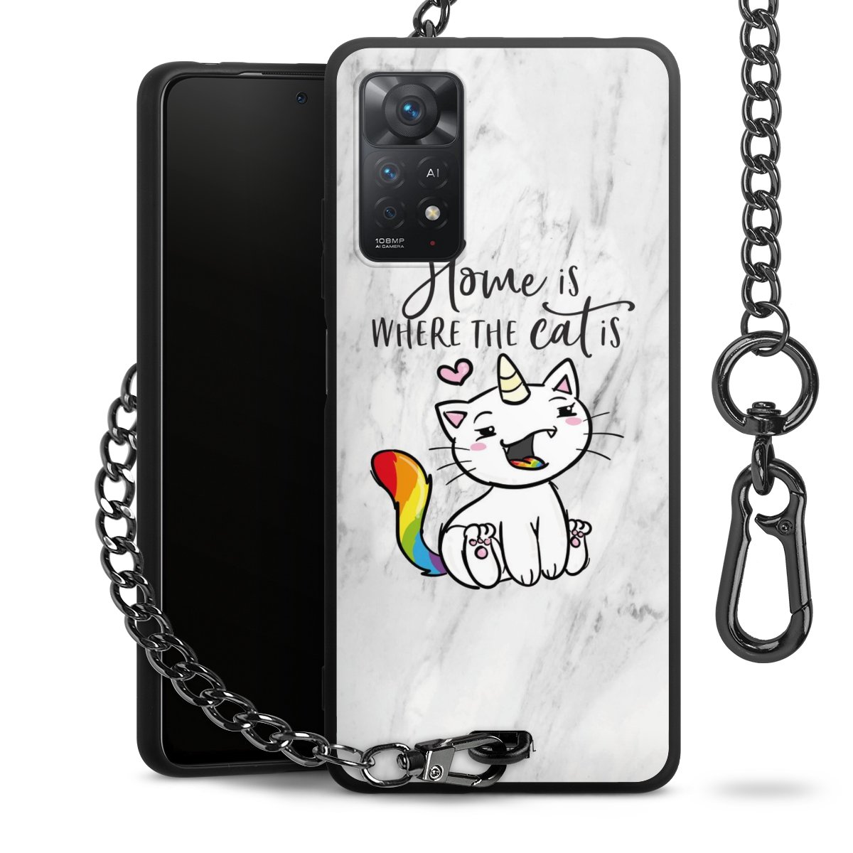 • Mattschwarze Handyhülle mit Metallkette