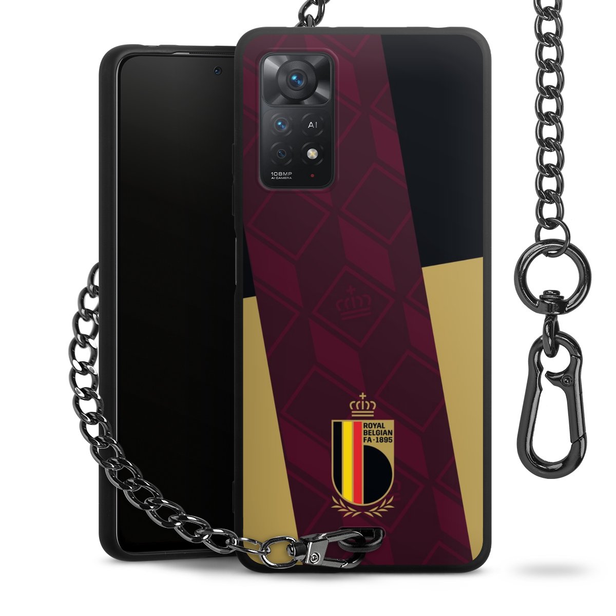 Die mattschwarze Silikon-Handyhülle besteht aus robustem TPU (thermoplastisches Polyurethan). Sie ist flexibel und schützt Dein Smartphone vor Stößen und Kratzern. Die Kette sowie der Karabinerhaken sind aus Metall in Gunmetal-Optik gefertigt. Für dieses Produkt kommen ausschließlich TÜV-geprüfte Materialien zum Einsatz.