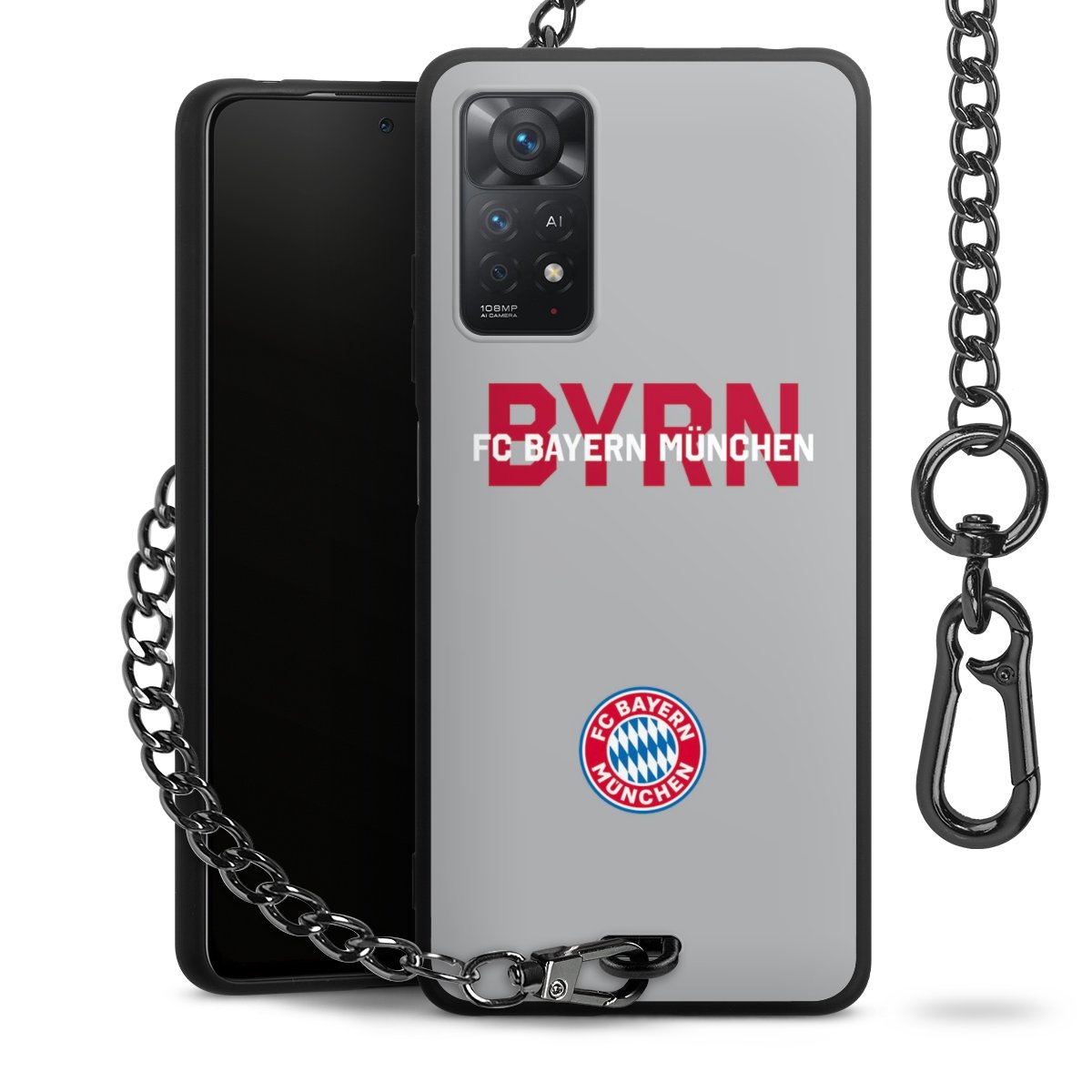 • Mattschwarze Handyhülle mit Metallkette
