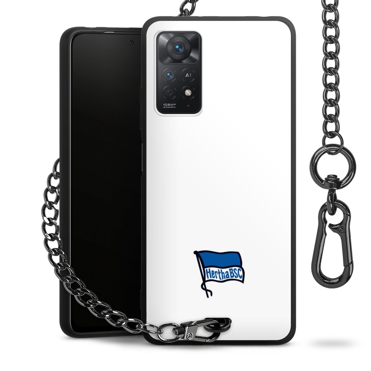 Die mattschwarze Silikon-Handyhülle besteht aus robustem TPU (thermoplastisches Polyurethan). Sie ist flexibel und schützt Dein Smartphone vor Stößen und Kratzern. Die Kette sowie der Karabinerhaken sind aus Metall in Gunmetal-Optik gefertigt. Für dieses Produkt kommen ausschließlich TÜV-geprüfte Materialien zum Einsatz.