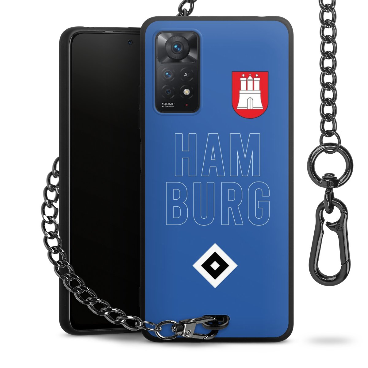 Die mattschwarze Silikon-Handyhülle besteht aus robustem TPU (thermoplastisches Polyurethan). Sie ist flexibel und schützt Dein Smartphone vor Stößen und Kratzern. Die Kette sowie der Karabinerhaken sind aus Metall in Gunmetal-Optik gefertigt. Für dieses Produkt kommen ausschließlich TÜV-geprüfte Materialien zum Einsatz.