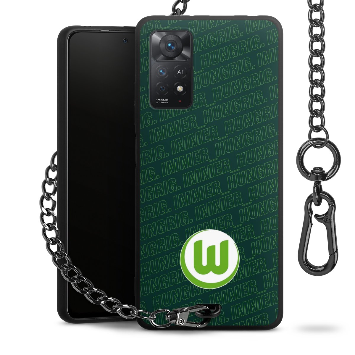 Die mattschwarze Silikon-Handyhülle besteht aus robustem TPU (thermoplastisches Polyurethan). Sie ist flexibel und schützt Dein Smartphone vor Stößen und Kratzern. Die Kette sowie der Karabinerhaken sind aus Metall in Gunmetal-Optik gefertigt. Für dieses Produkt kommen ausschließlich TÜV-geprüfte Materialien zum Einsatz.