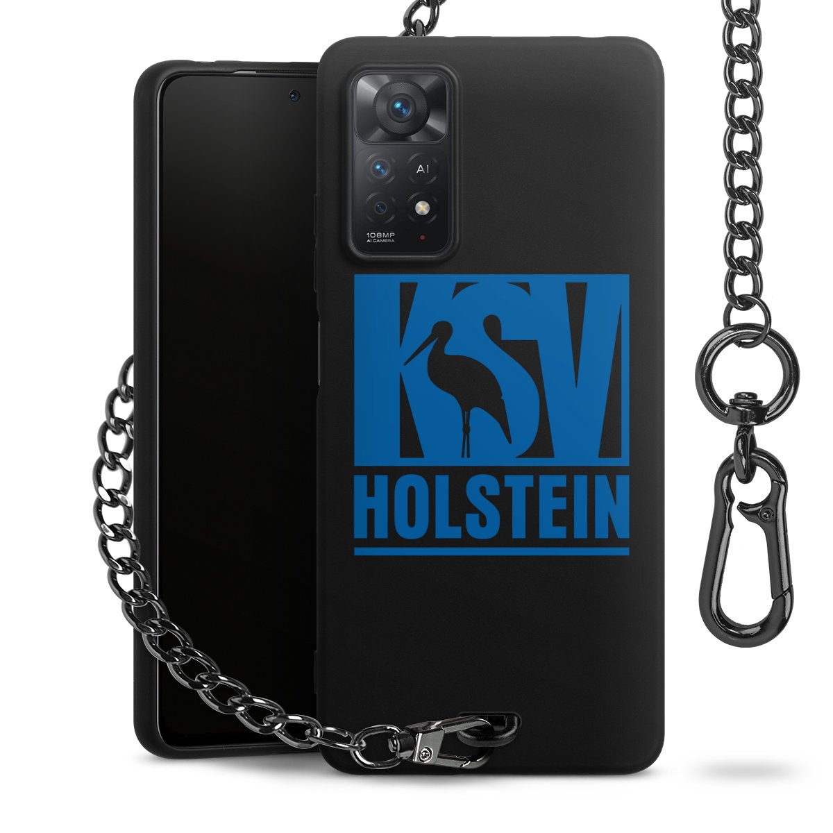 • Mattschwarze Handyhülle mit Metallkette